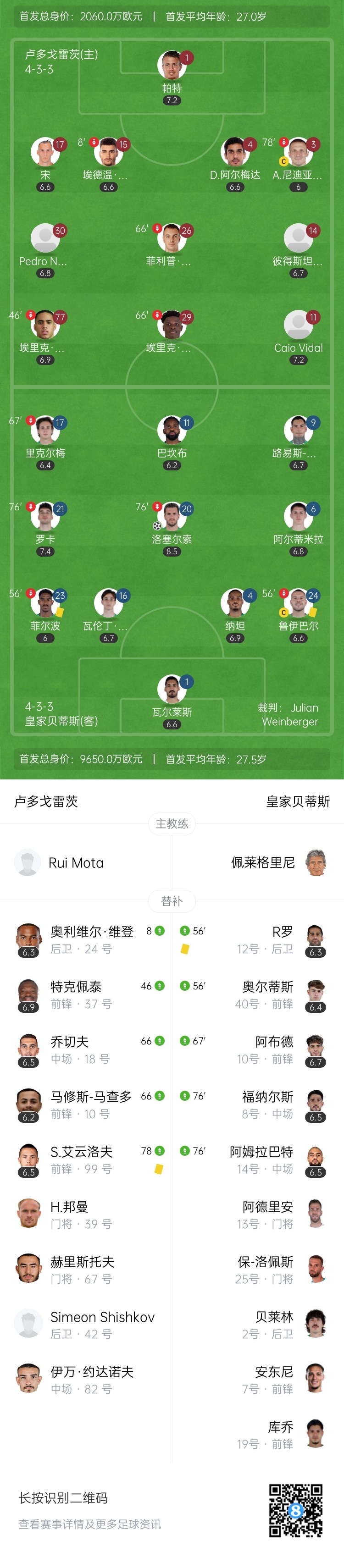 贝蒂斯2-0卢多戈雷茨 安东尼轮休未登场洛塞尔索破门菲尔波造乌龙