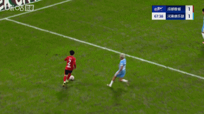 胡荷韬突入禁区时倒地,蓉城球员向裁判抗议,裁判未予理会